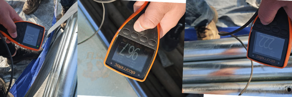 The actual measured zinc layer thickness during the inspection was the lowest at 【86 micrometers】 and the highest at 【222 micrometers】, which was far higher than the customer’s requirement.